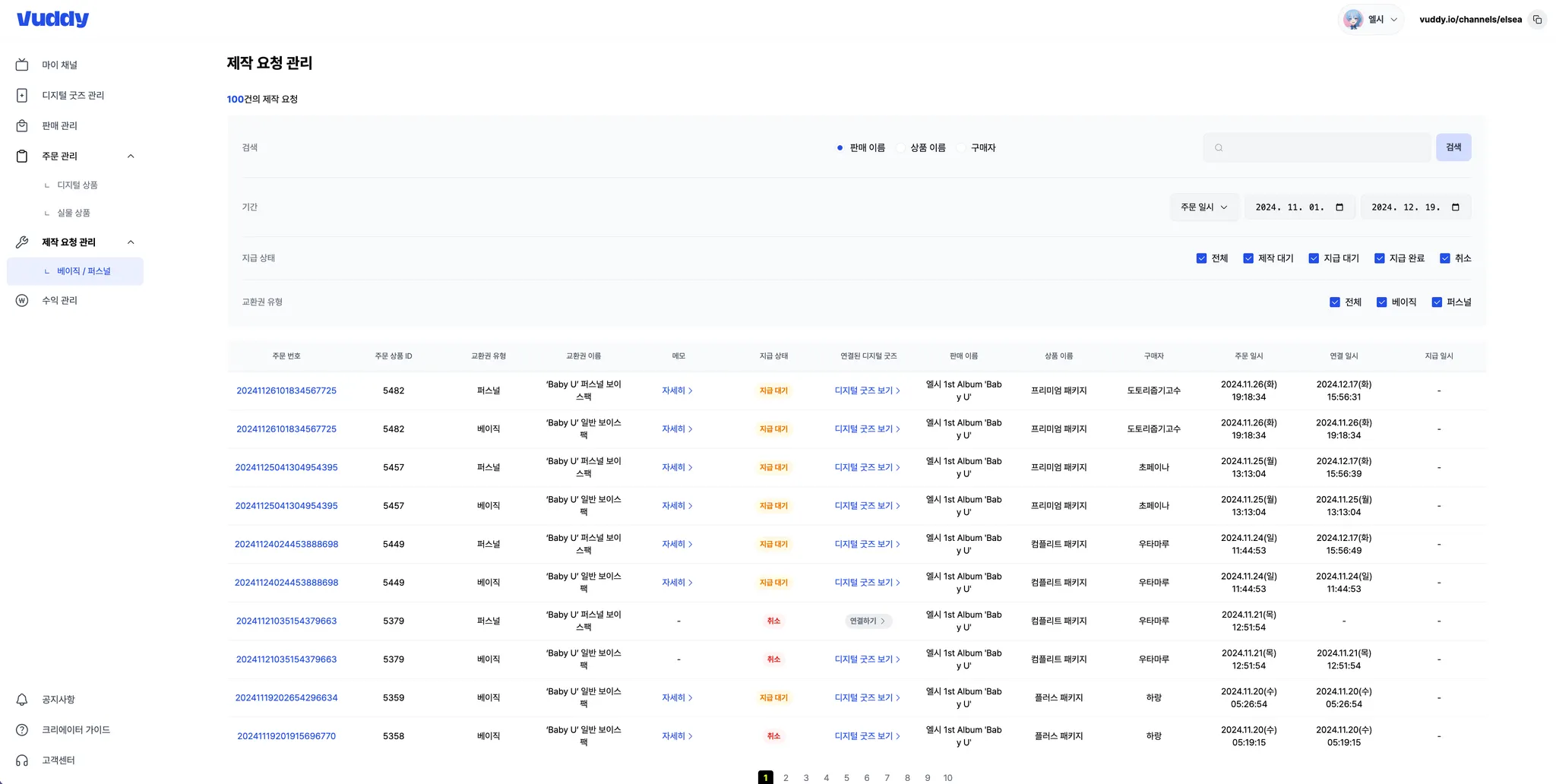 디지털 단독 판매한 상품의 제작 요청을 관리합니다.